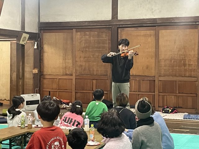 ちょっとお腹も満たされたところで、恒例の原田拳士のバイオリン演奏!