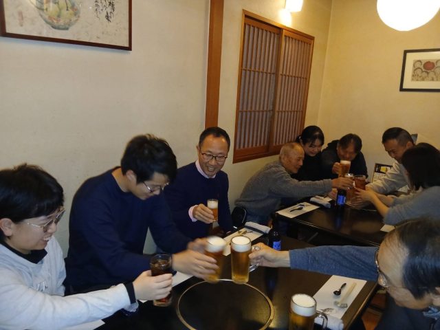 お店で行いました。日頃、稽古の時にできない話をたくさんして盛り上がりました!