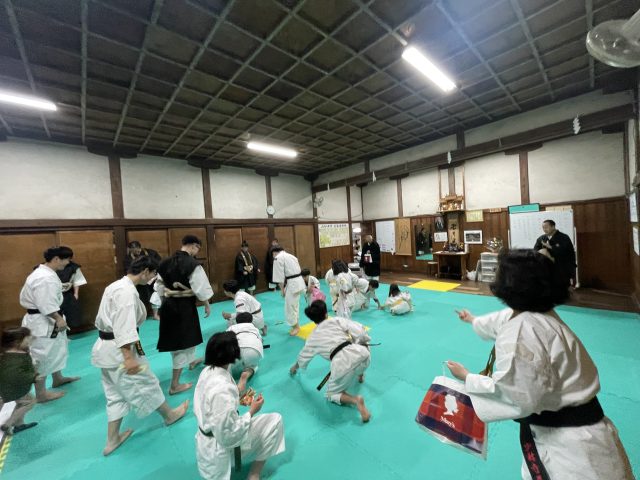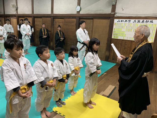 まずは教典を唱和。拳士の皆さんも今年一年の始まりと誓いを胸に大きな声で唱和できました。