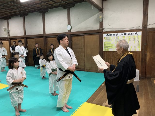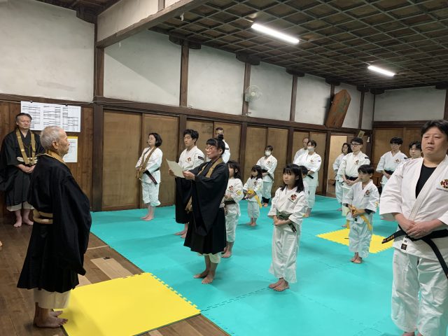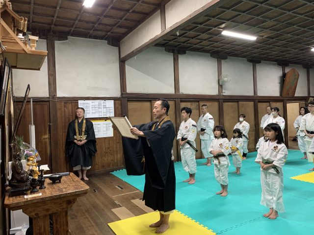 そして昇級の合格証の授与です。本日参加の5人の拳士に手渡しました!みんなおめでとう!
