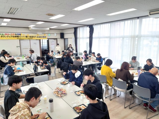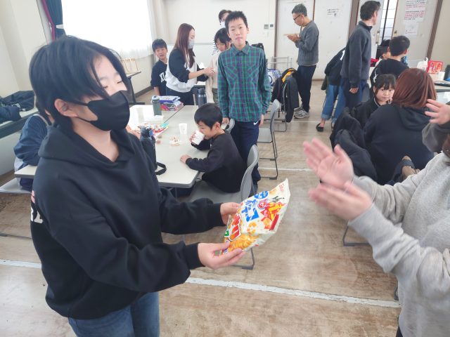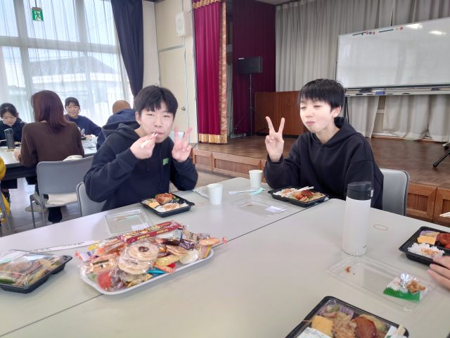 掃除の後は場所を移動して納会です🍱🍫🍬🍭