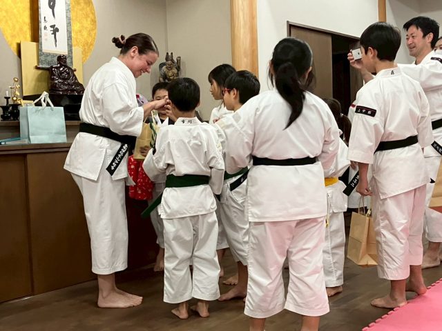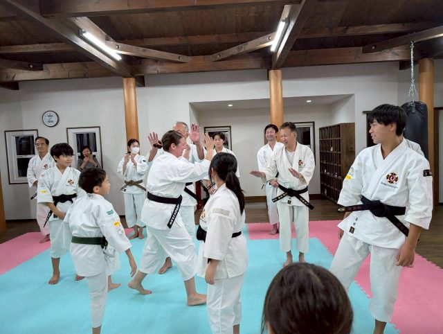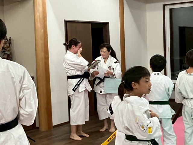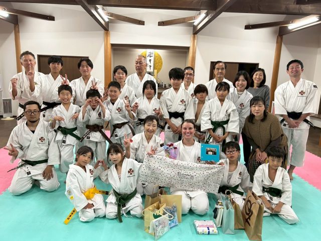 2022年5月に上宇部道院に入門してくださったステファニア フランゴスさんが、2025年12月中旬に母国イギリスに帰国されることになりました。お別れはとても悲しいのですが、また一緒にお稽古する日が来る事を信じて、みんな笑顔でお別れ会を行いました。